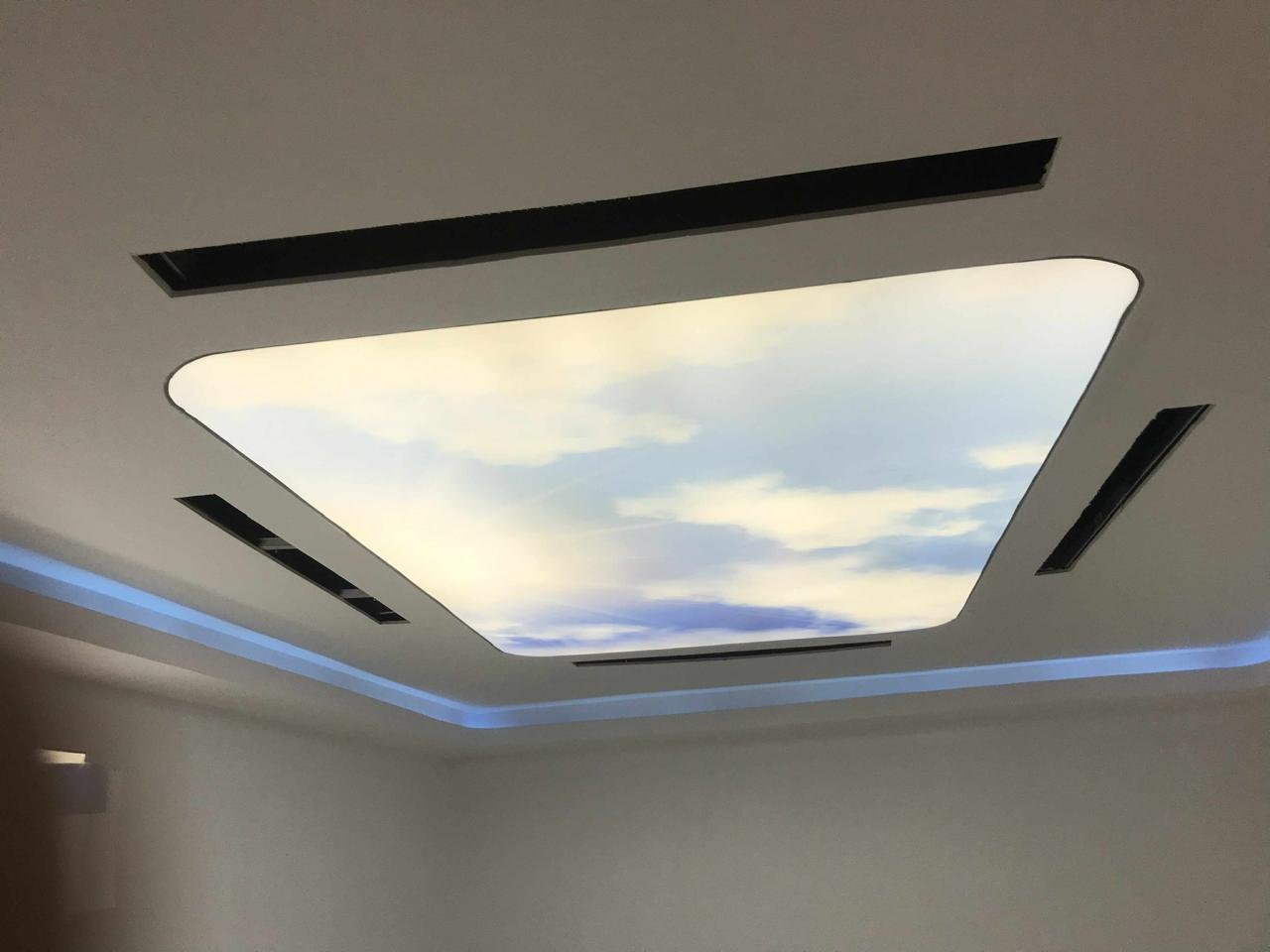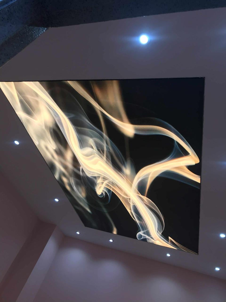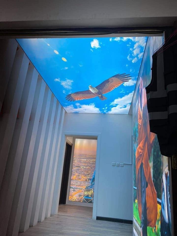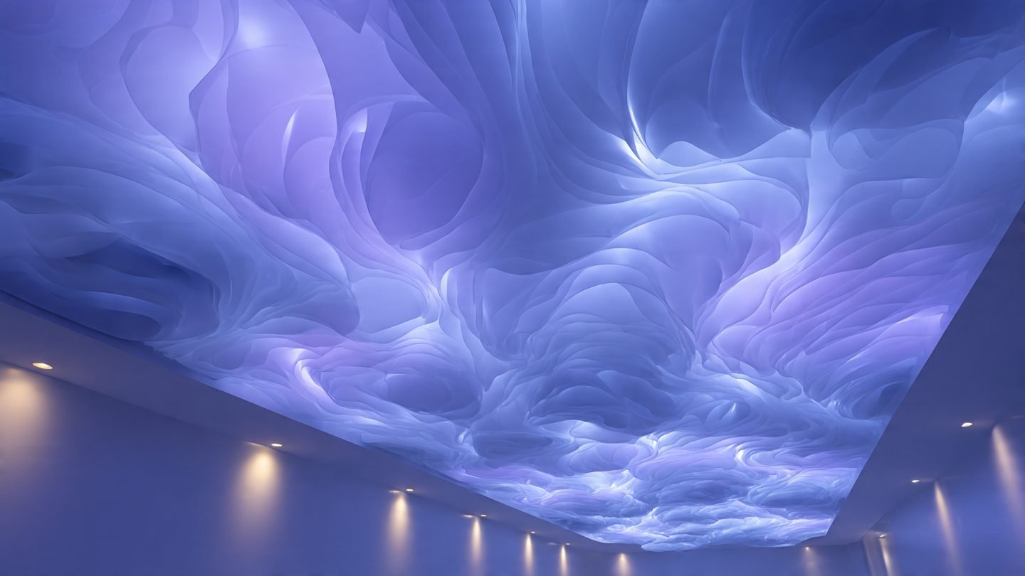 بريق يخطف الأنظار: هي مزيج بين السقف المشدود الفاخر وإضافة نقاط كريستالية صغيرة أو مواد عاكسة للضوء.